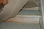 Het schilderen van een houten trap is een flinke klus. Zeker als het een oude trap is waar tapijt op heeft gezeten. Begin met het verwijderen van het tapijt en de nietjes. Als het erg vast zit snij dan met een afbreekmes het tapijt in strookjes van 5 of 10 cm breed. Nu trek je het er veel makkelijker af.
