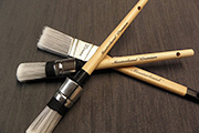 Een stukje schuurpapier middelgrof nemen en er met een droge kwast op gaan schilderen. Hierdoor gaan de losse haren eruit en slijt hij vast een beetje zodat er later minder strepen zichtbaar zijn.