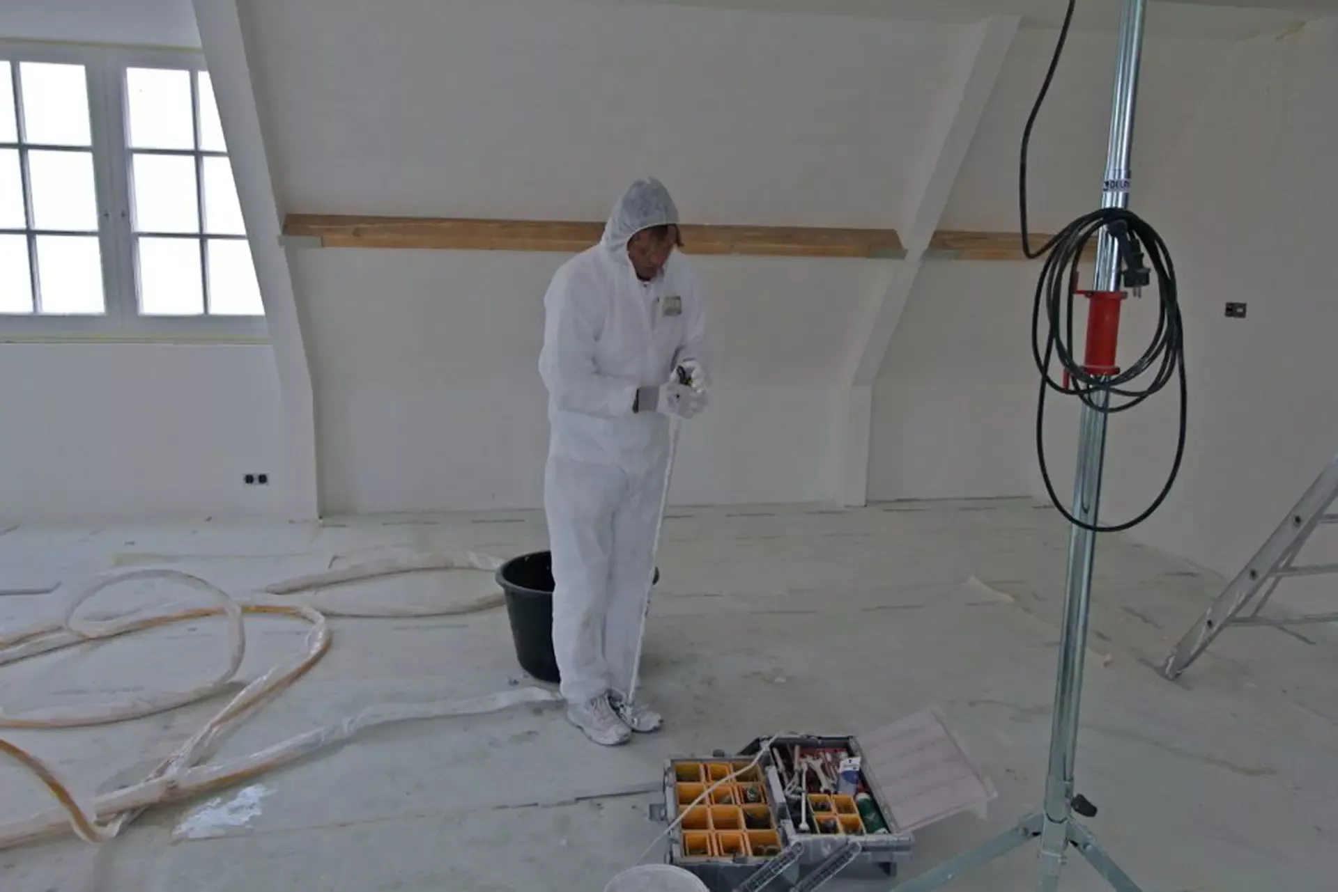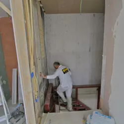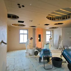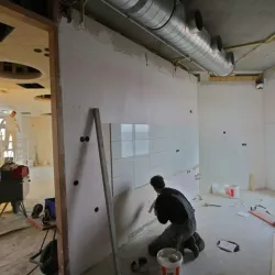 Voor het club/restaurant hebben we gebruik gemaakt van het innovatieve Diamant pleister van Knauf, een stucmortel die vele malen sterker is dan de gangbare materialen. Dit zorgt voor extra duurzaamheid en weerstand. Uiteraard hebben we alles afgewerkt met een hoogwaardige, goed reinigbare buitenkwaliteit muurverf, om de ruimtes niet alleen stijlvol, maar ook onderhoudsvriendelijk te maken.