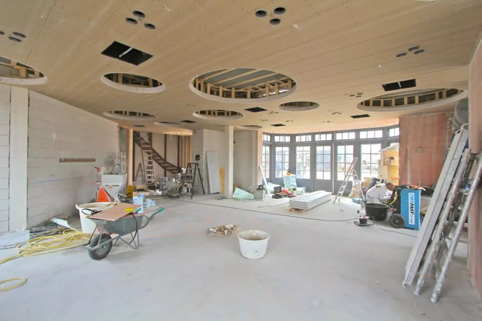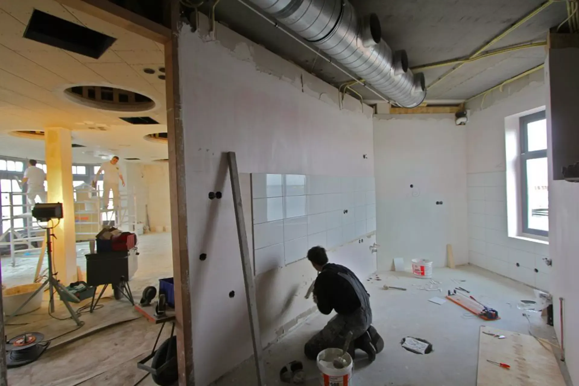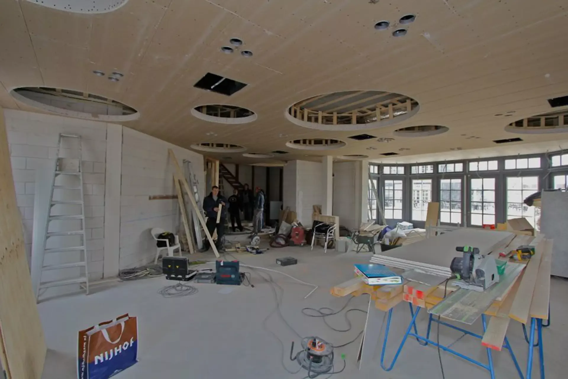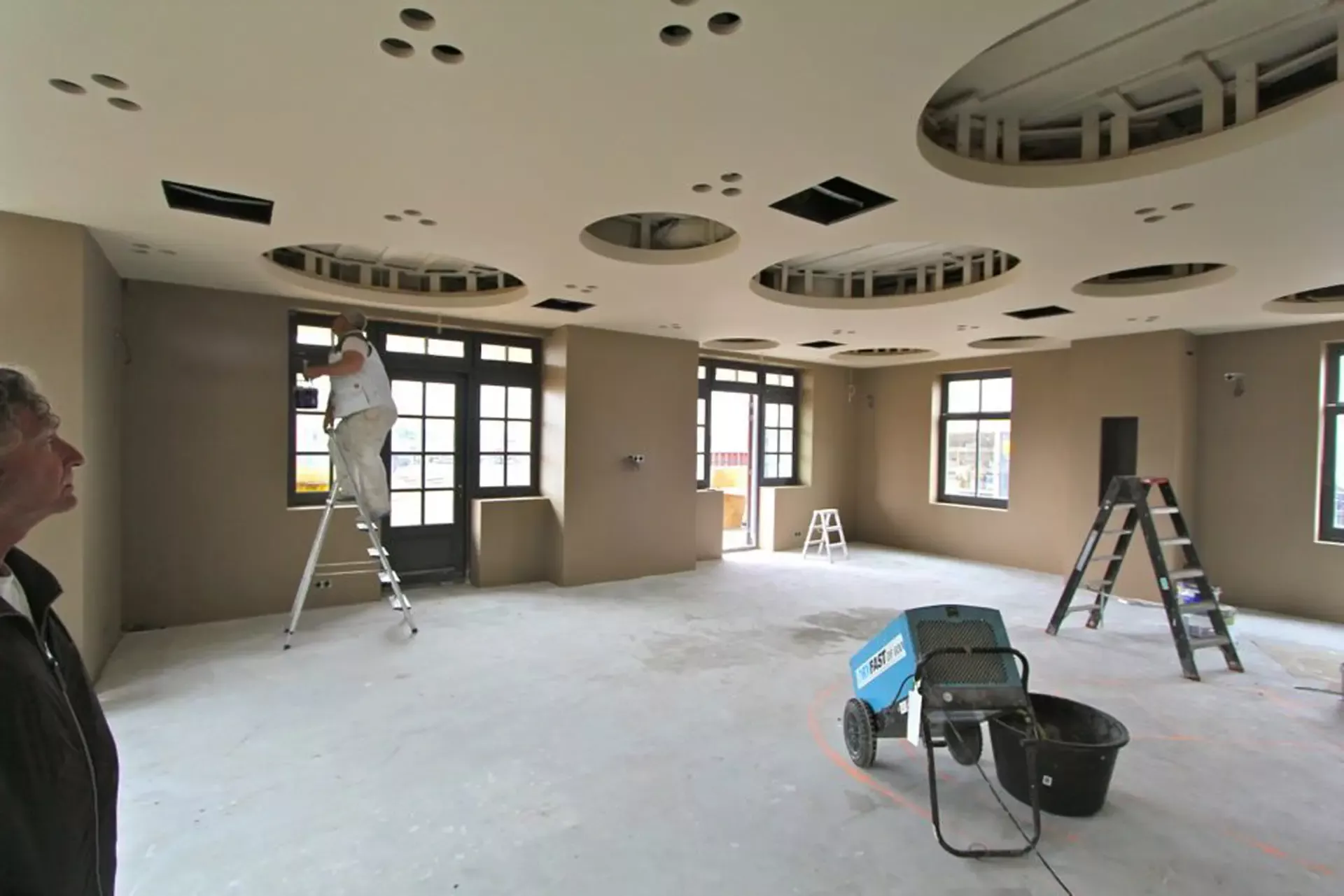 In het Nautisch Kwartier in Huizen is recent de nieuwbouw van diverse horecagelegenheden voltooid. Wij kregen de eer om het stucwerk en spuitwerk van maar liefst 1.100 m², verdeeld over drie etages, te verzorgen.